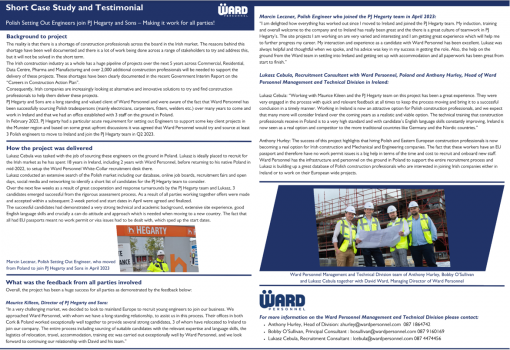 Case Study and Testimonial in relation to Polish Construction Engineers making the move to Ireland