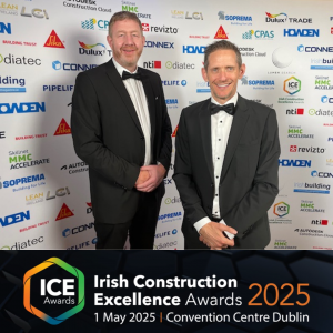 Our team, represented by Anthony Savage, Head of Business Development, and David Ward, Founder & MD (L-R), had the pleasure of attending the Irish Construction Excellence Awards at The Convention Centre Dublin (The CCD) on Thursday, May 1st.