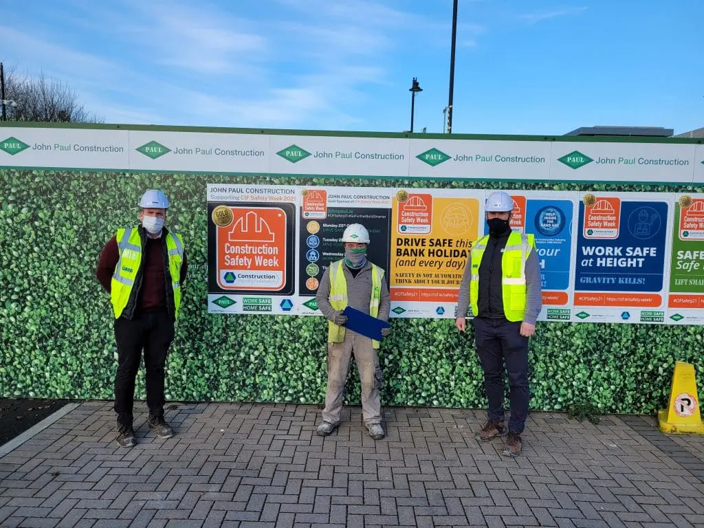 See the above happy faces at our client’s Kildare Village site in Kildare Town, with Brian Goode, Division Manager, Conor Shannon, Account Manager and our winner Dennis receiving his award. Conor and Brian met Henry Flanagan, Project Manager with John Paul Construction on site. We look forward to announcing more winners in the coming months.
